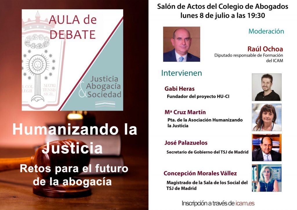 Inscripciones en este enlace #HumanizandoLaJusticia El Centro de Estudios del Colegio pone en marcha una nueva edición de su Aula de Debate que tendrá lugar el próximo día 8 de julio, a las 19:30 horas, en el Salón de Actos del ICAM. Bajo el título “Humanizando la Justicia: retos para el futuro de la Abogacía”, este […]