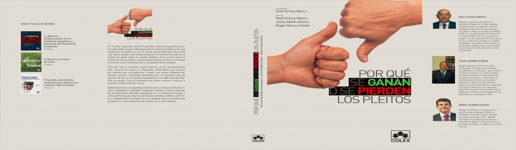 Raúl Ochoa Marco, Jesús María Alonso y Angel Alonso Gavito Ed. Colex Páginas189 Desde el principio la sistemática del libro es la misma, se trata de conocer la legislación aplicable al supuesto tratado, un breve resumen del procedimiento aplicable, aderezado con un esquema procesal y, como piedra angular, algunas sentencias dictadas al efecto, estimando o […]