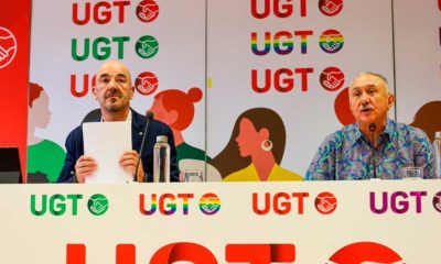 El secretario general de UGT, Pepe Álvarez, y el vicesecretario general de Política Social del sindicato, Fernando Luján, presentaron ayer, lunes, en rueda de prensa la...